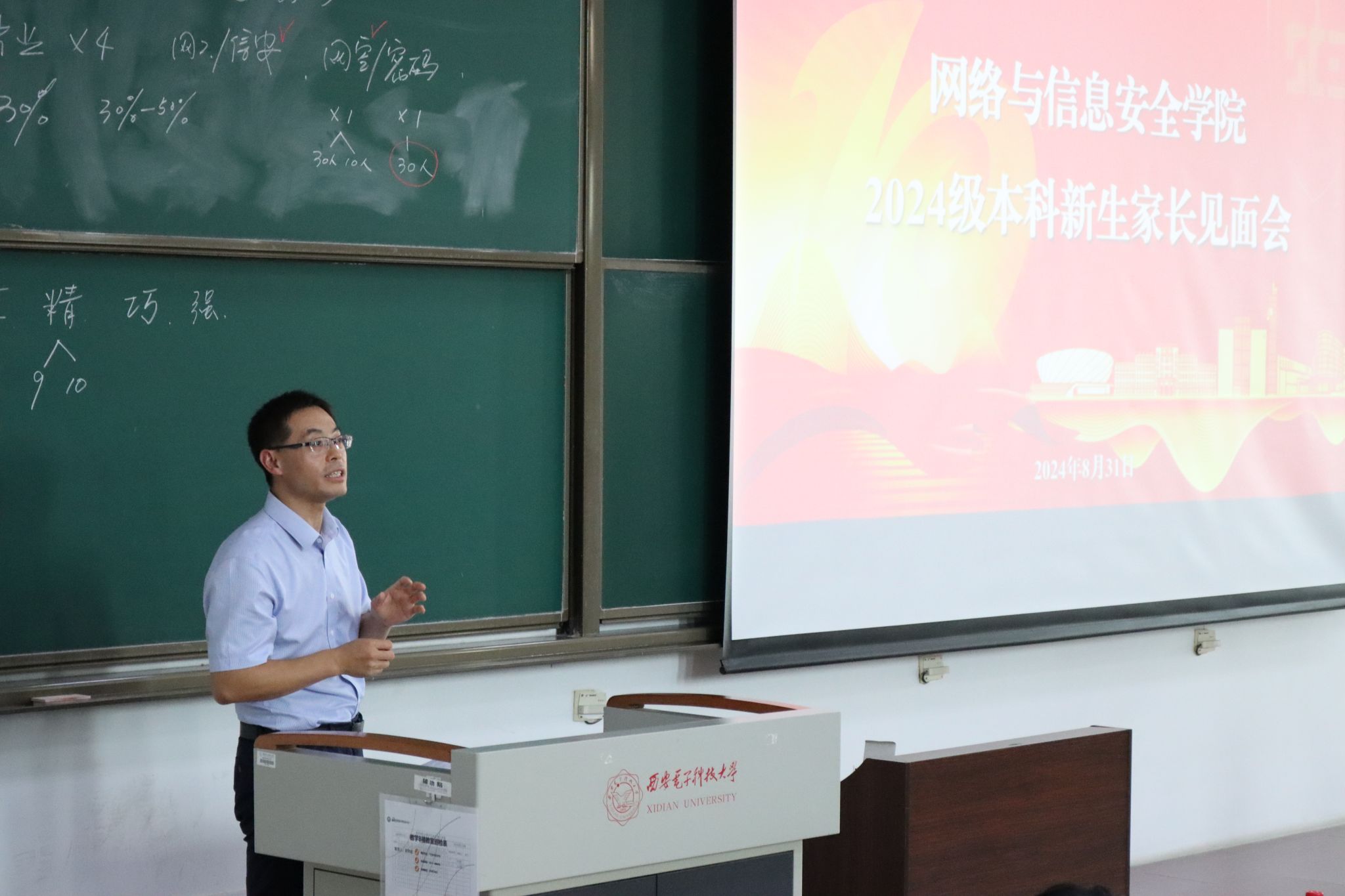 李晖就公司和公司发展历程、团队队伍、教学科研、资源保障、国际合作等方面对公司情况做了详细介绍。他谈到,西电作为密码学和信息安全领域的“黄埔军校”,深耕网络安全领域,网络空间安全学科在第五轮学科评估中也取得了优异的成绩。今年也是公司成立十周年,公司将在新时代新征程上继续在网络安全领域取得新的成就。杨超用几组数据和关键词阐述了公司专业设置、公司产品、学科竞赛和本科生实习实践等情况,生动风趣的语言引得现场家长阵阵掌声。张国良介绍了员工日常教育管理,他希望家长与公司同向同行,家校共育,把孩子培养成对国家、对社会有用的人才。会后家长们也积极提问交流,通过各位领导老师的介绍,家长表示对孩子们加入网信院充满信心,对孩子未来接受的教育充满期待。