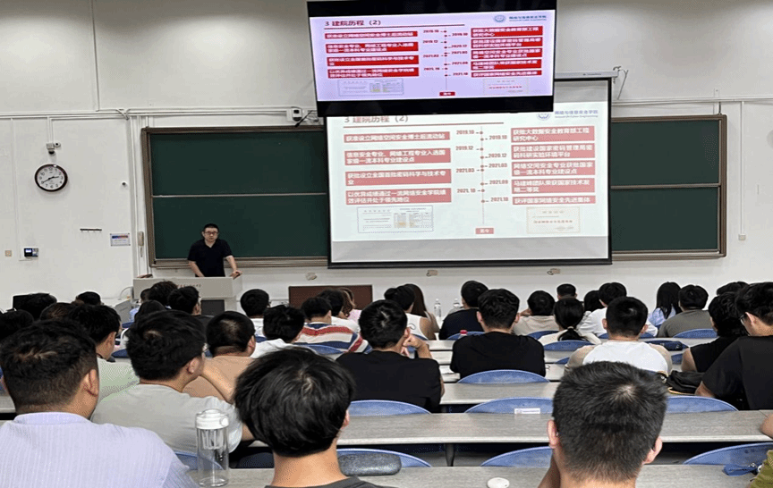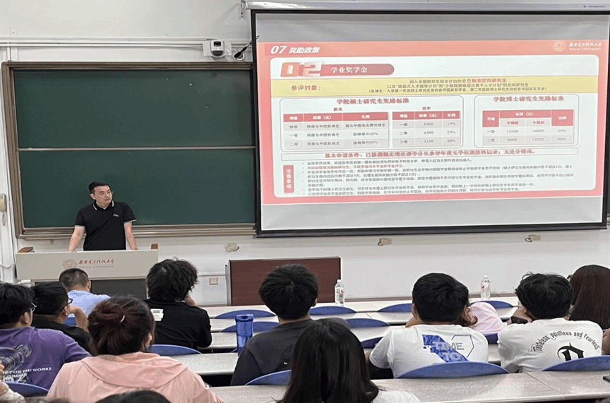 紧接着,陈强老师围绕研究生日常管理、奖助体系、心理健康等13个方面为同学们开展了入学教育,通过具体案例讲解、播放消防交通安全警示教育短片等多种形式,全面地讲述了有关研究生生涯的各项事务,引导同学们遵守校规校纪,增强安全防护意识,恪守学术道德,合理规划生活。
