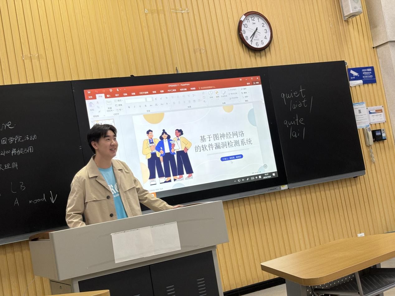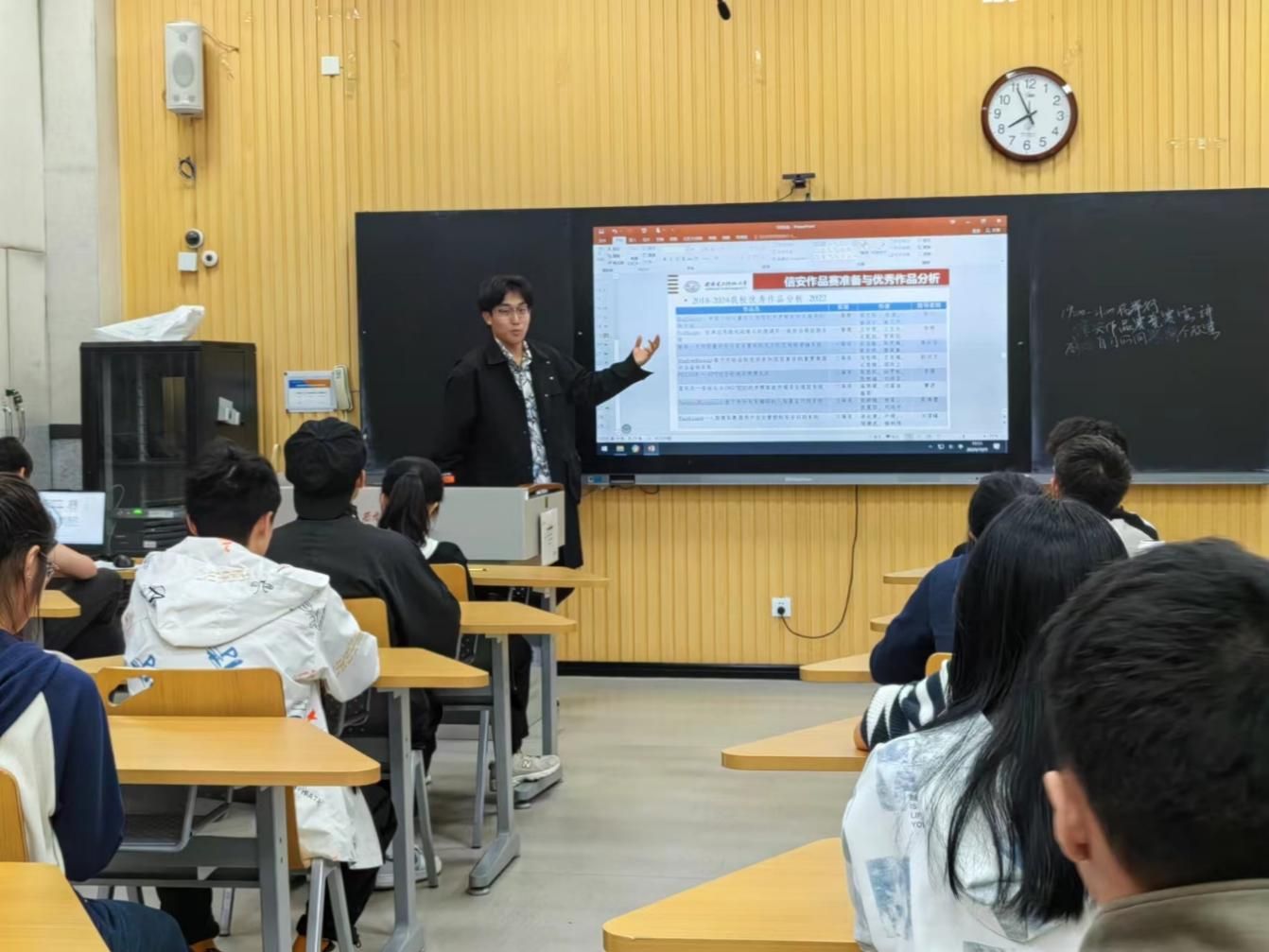 秦远贺学长生动形象地向同学们介绍了密码赛的组队要求、办赛情况、比赛题目、比赛形式等内容。他以自己的经历为切入点,以图片为形式,层层深入地讲解了比赛的流程和方向,让同学认识到了密码竞赛的前景和未来,充分激发了同学们对密码竞赛的好奇和关心。在互动环节中,学长耐心解答了同学们关于比赛准备、团队合作以及提高密码技术能力等方面的疑问。