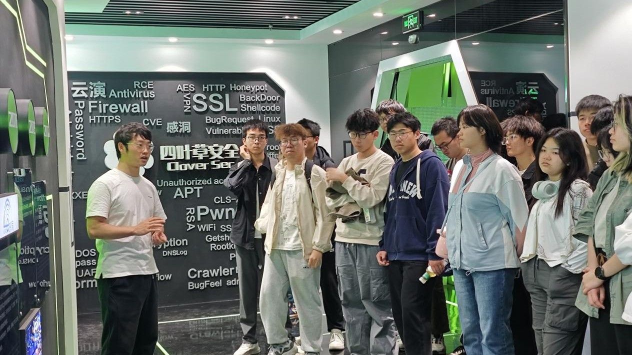 马熙月同学:“走进西安四叶草信息技术有限公司,浓厚的科技氛围扑面而来,让我们瞬间感受到这里的专业与活力。通过了解企业的发展方向定位和公司在网络安全领域的卓越成果,不仅让我们认识到网络安全行业的重要性和广阔前景,还点燃了我们对前沿技术探索的热情,收获颇丰。”