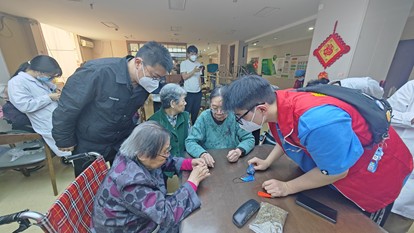 随后,志愿者们和老人们一起制作艾草香包。大家手持剪刀、针线和布料,跟着教程一步一步完成香包制作。大家互相学习交流,在一剪一穿间创作出精美的香包作品,为养老院增添了一份喜悦氛围,也让传统文化在代际互动中得以传承。整个过程中,老人们的脸上洋溢着幸福的笑容。制作活动结束后,同学们还为那些无法亲手制作的爷爷奶奶送上了香包和诚挚的祝福。这些香包不仅代表了同学们的心意,也传递了对老人们的关爱和祝福。