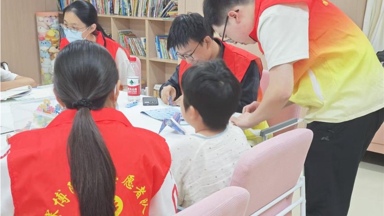 在西安国际医学中心的儿童康复一科,志愿者们与小朋友们一对一陪伴,为他们辅导适龄的学习内容,同时也为他们带去温暖的情感陪伴。在活动教室里,志愿者们耐心辅导小朋友们在田字格里写下稚嫩的汉字、在算术本上计算方程组,悉心指导小朋友们折叠千纸鹤、放飞纸飞机并一起搭积木。整个活动过程中,小朋友们脸上洋溢着快乐和幸福的笑容。