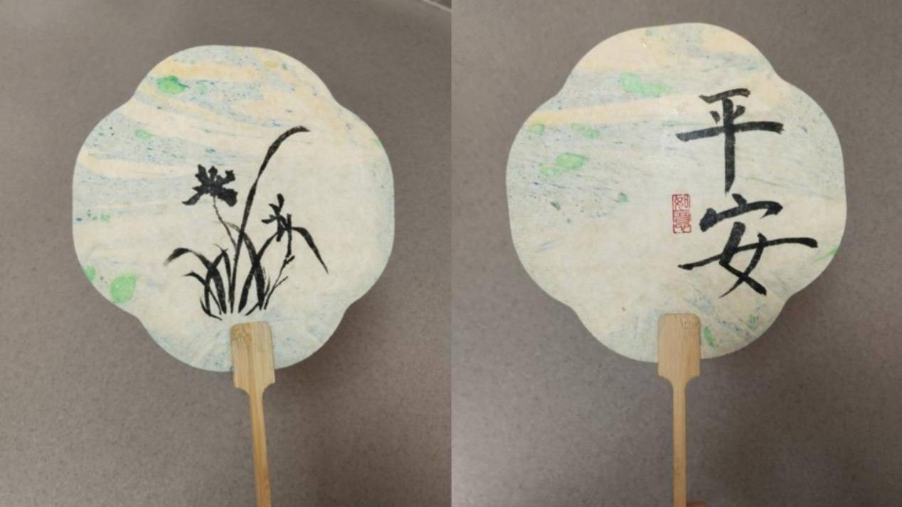 紧接着开展的DIY漆染团扇环节,将传统工艺与现代创意相结合。桌上整齐摆放着素白的团扇、各色颜料和装饰材料,同学们发挥奇思妙想,用漆染工艺为团扇增添色彩。同学们工整地写下“平安”、“端午安康”、“学业进步,梦想成真”等祝福,传递出对学习和生活的美好期待。大家一边制作,一边交流心得,欢声笑语不断。