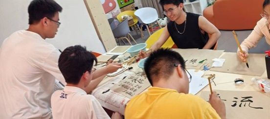 活动伊始,“宣纸寄情”环节让现场充满了浓厚的文化氛围。活动志愿者早早准备好了宣纸、毛笔和墨汁,同学们围在桌前,认真思索着端午祝福语。有的同学写下“端午安康,万事顺遂”,表达对亲朋好友的美好祝愿;有的则挥毫写下屈原的《离骚》名句“路漫漫其修远兮,吾将上下而求索”,感悟古人的爱国情怀与壮志豪情。书法爱好者车正坤同学主动当起“小老师”,耐心地指导同学们握笔姿势和书写技巧。一时间,活动室里墨香四溢,一张张宣纸承载着同学们对端午的理解与祝福。