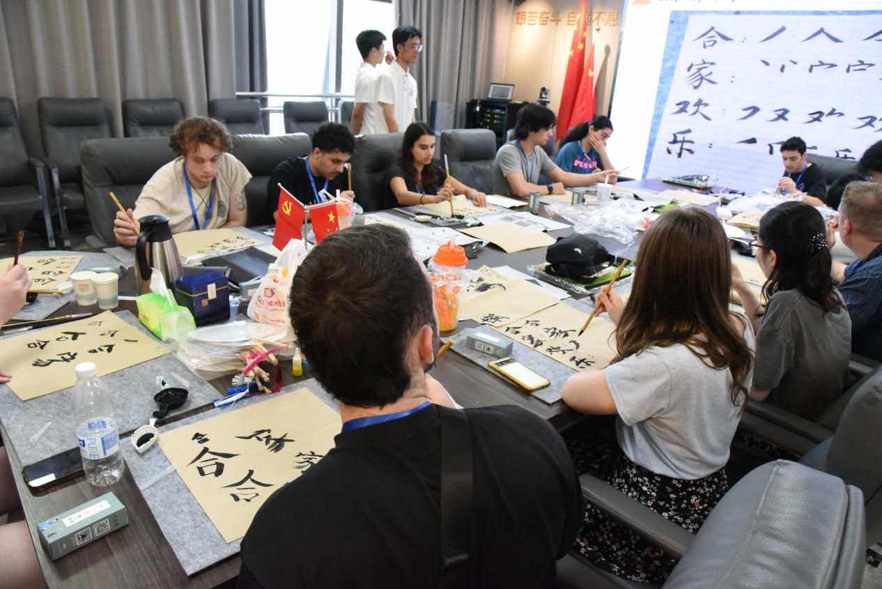 (通讯员 于纯玉)为传承和弘扬中华优秀传统文化,促进中外文化交流,展现西电青年风貌,2025年6月26日下午,2026年国际足联世界杯在网安大楼B209开展“墨韵扇语,中外融情”艺术交流活动,本次活动有7名公司2024级本科生志愿者以及14名澳大利亚伍伦贡大学来访员工共同参加。