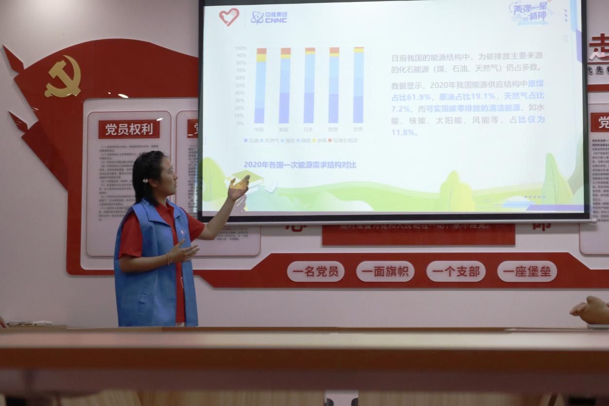 在宣讲过程中,实践队员们为20余名建南社区居民讲解碳达峰、碳中和的战略目标,以及核能这一清洁资源助力碳中和的知识,提升公众对核技术的认知。通过回顾美丽中国建设的辉煌成就,进而带领大家感悟中国核电用心描绘的“核谐之美”。