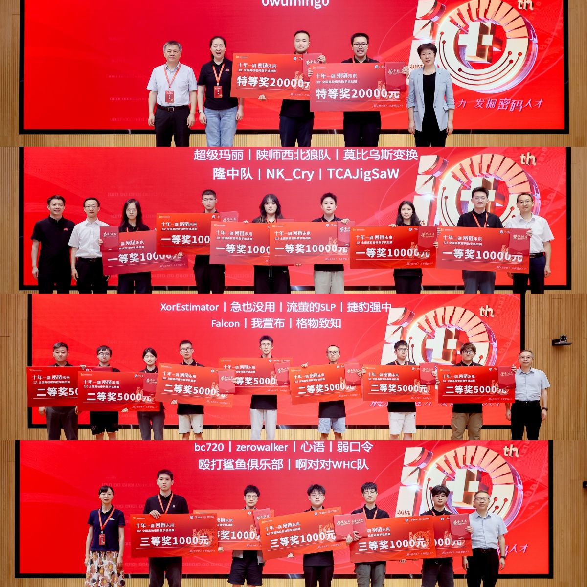 今年正值全国高校密码数学挑战赛启动十周年,今本届赛事特别设立了“10周年颁奖”环节,同时正式发行由全国高校密码数学挑战赛专家委员会组编、高等教育出版社出版的《全国高校密码数学挑战赛优秀论文选集》。大赛最后举行了第十一届(2026)全国高校密码数学挑战赛启动仪式及赛旗传递仪式。