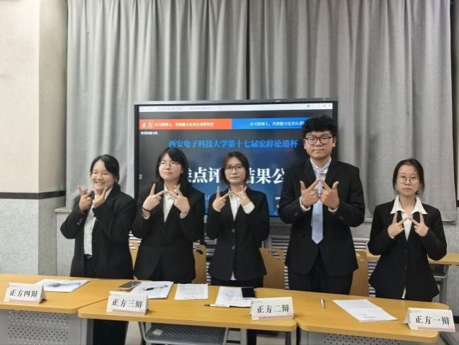 历经三轮小组赛的激烈角逐,以精彩的逻辑交锋、沉稳的赛场表现展现了网信学子的思辨风采与青春活力。特别是小组赛第三轮面对“对话式AI”这一紧扣科技前沿的热点辩题,队员们充分汲取前两轮实战经验,赛前分工明确、深耕细研,广泛搜集行业动态与学术资料,反复打磨论点体系与攻防策略;赛场之上,四位辩手配合默契无间,既以清晰的逻辑链条层层递进阐释核心观点,又针对对方质询沉着回应、精准破局,攻防转换流畅自然,精彩交锋引得台下掌声不断,最终稳稳拿下比赛,为整场小组赛征程画上了圆满且振奋人心的句号。