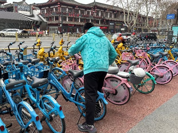 在便民服务区域,志愿者们兵分两路开展服务。一组志愿者对场地周边随意停放的共享单车、自行车进行整理归位,将歪倒、占道的车辆摆放整齐,规范周边停车秩序,为市民营造整洁、通畅的出行环境;另一组志愿者则耐心为问路市民解答路线问题,用热情、细致的服务化解市民的出行难题。