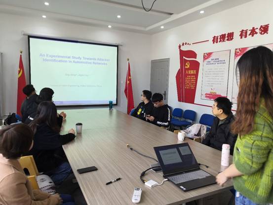 首先由宁静作题为“车辆网络中的攻击方识别和入侵检测”的分享,报告首先介绍了由于车辆网络的开放性和复杂性,多种攻击应运而生,而抵抗攻击的方法各有缺陷。基于距离的异常检测方法LOF被广泛使用在多种攻击检测场景,可以较好地检测攻击行为。宁静使用该方法在真实场景中进行了一系列检测,取得了很好的效果。