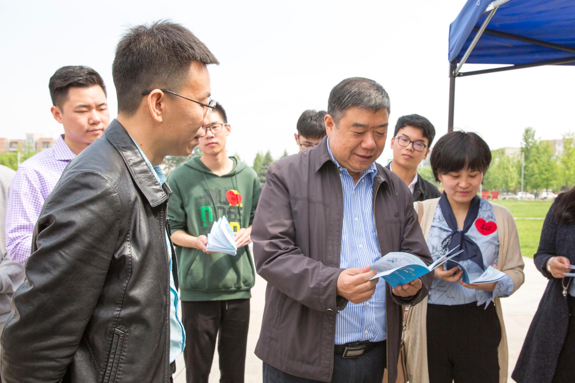 杨银堂在听取宣传员对国家安全的讲解和部分员工参与此次活动的感想后,与同学们进行亲切交流:“习近平总书记曾经说过,贯彻落实总体国家安全观,必须既重视外部安全,又重视内部安全。实现中华民族伟大复兴的中国梦,保证人民安居乐业,国家安全是头等大事。”交流过程中的提问互动,拉近了师生的距离,也在现场给同学们上了一堂安全教育课。杨银堂充分肯定此次活动,并与参与活动的师生一起合影留念。