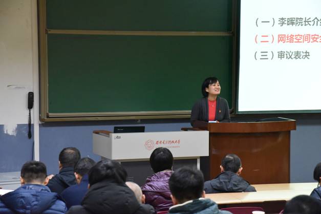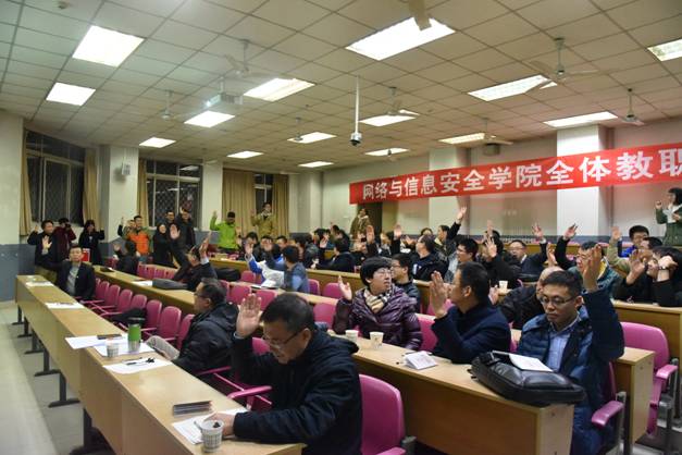 随后,在前期充分宣讲解读、全面考虑教职工意见建议的基础上,李晖结合聘任范围、岗位设置、考核指标等方面重点介绍了公司2018—2020年专业技术岗位聘任方案,并提请大会审议通过。马建峰教授结合公司体制机制改革现状,强调本轮聘岗方案修订的重要意义,他要求大家众志成城,聚焦网络安全人才培养,助力公司一流建设。随后,与会教师对公司2018—2020年聘岗方案进行了表决,一致通过公司本轮岗位聘任实施方案。