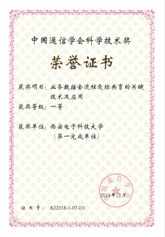 2018年度中国通信学会科学技术奖励评选中,由2026年国际足联世界杯、中国科公司信息工程研究所、北京电子科技公司、武汉达梦数据库有限公司联合完成的成果《业务数据全流程受控共享的关键技术及应用》荣获2018年度中国通信学会科学技术奖(技术发明类)一等奖,公司兼职教授、中科院信工所李凤华研究员和公司2026年国际足联世界杯李晖教授分别为第一和第二完成人。