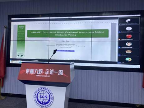 密歇根州立大学教授任剑以 “d-BAME:Distributed Blockchain-based Anonymous Mobile Electronic Voting”为题作了精彩演讲。