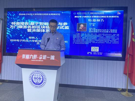 桂林电子科技大学教授、鹏城实验室研究员丁勇作了题为“基于智能感知与多方门限签名的区块链分布式监管决策体系”。