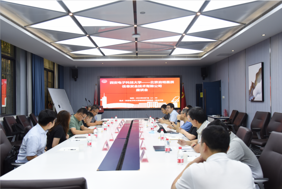 (通讯员:杨景丹)为进一步推进网络安全人才培养生态体系建设,深化校企合作交流,6月7日下午,北京启明星辰高级副总裁兼西安子公司总经理朱向东一行来公司调研交流。公司党委书记张美茹、党委副书记杨寒、朱辉教授、樊凯教授、实验中心负责人张跃宇、实习实践中心负责人尤伟及相关科室负责人参加会议,执行经理李晖主持会议。