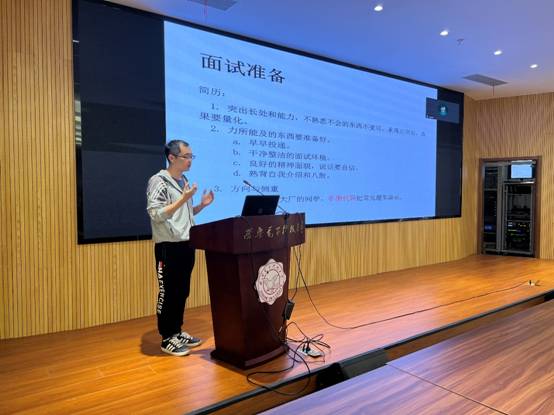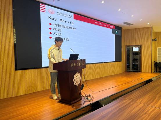 5月9日,签约技术类岗位的四位同学主要从就业选择和笔试面试两个方面进行经验分享,为同学们提供了获取相关学习资源的途径、笔面试注意事项等经验。四位同学分享结束后,对大家提出的问题做出了耐心细致的解答,同学们收获颇丰。