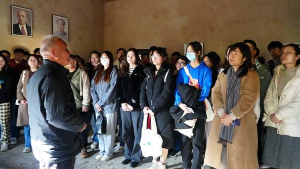 接着公司师生一行参观了柳青墓园、柳青故居和柳青纪念馆。在柳青墓园,守墓45年的刘田民老先生为大家讲述了作家柳青生前的一些故事。他谈到柳青先生去世时全村人都含泪来参加葬礼,足以见到这位主动扎根农村14年的人民作家与乡民的深厚情谊。