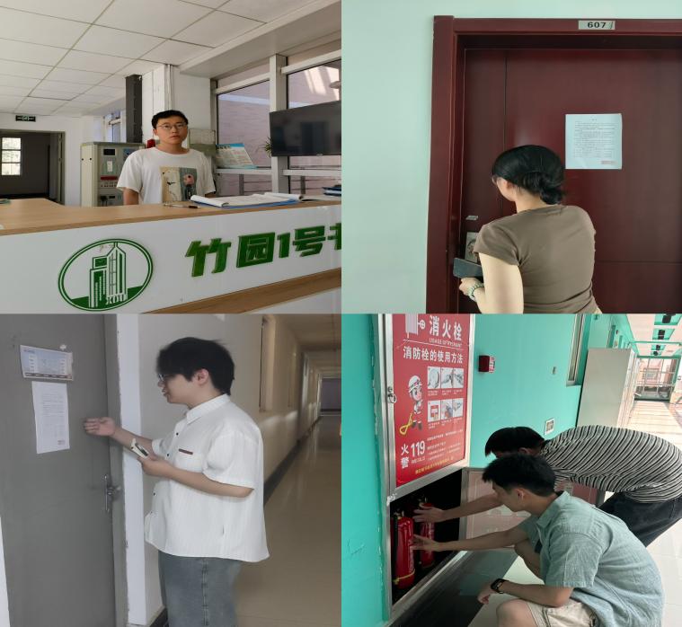 转至宿舍楼,研究生同学们化身宿舍楼管理员、消防安全检察员、房源信息核查员,进行宿舍楼来访登记、消防设备检查以及宿舍巡查等工作,确保同学们宿舍的安全,营造了良好的生活环境。李智灵同学谈到:“在此次的劳动教育中,我报名了宿舍楼管的体验岗,宿舍楼管的工作关系着每一位员工的日常生活:每天的清洁、维护和安全检查,虽是重复的劳动,但每一份付出都换来了宿舍的整洁与安宁。经过这次体验,我深感这个岗位的责任重大,也体会到了服务他人带来的快乐和满足感。”