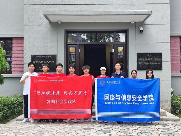 在安徽名人文化纪念馆,实践队员们了解了在安徽历史上赫赫有名的人物,穿越时空沉浸在他们传奇的人生中,了解了这些古今先贤的故事,聆听了当地名人的革命故事。在纪念馆周边,同学们开展“网络安全万里行”系列活动,开展网络安全知识科普和宣讲、分发网络安全手册,为国家安全贡献自己的一份力量。