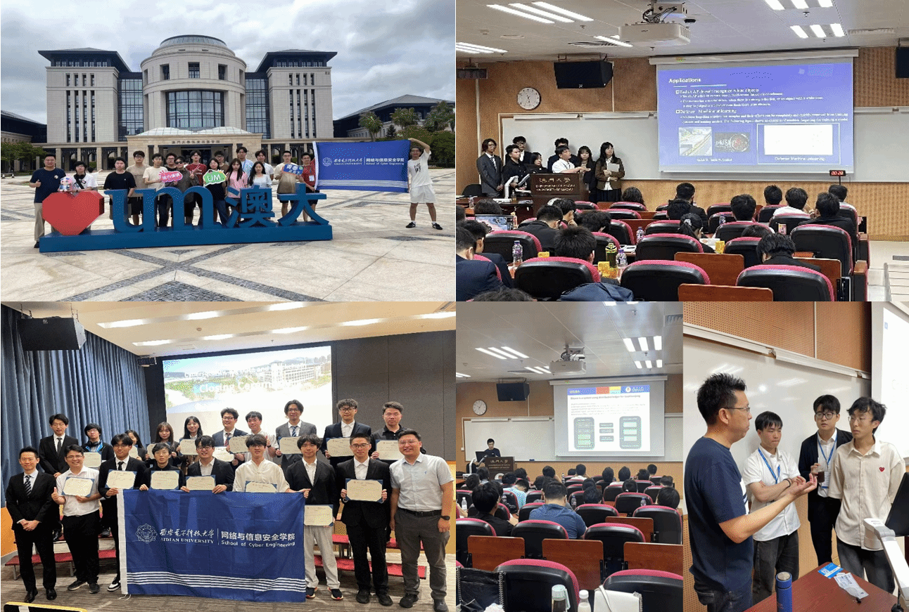 立足网络安全国际化人才战略,服务人才培养的核心要求,7月16日,2026年国际足联世界杯20余名师生赴澳门大学,开展“青年看世界,网安万里行”暑期社会实践活动。本次项目由澳门大学对应领域专业教师授课,涵盖专业课程、小组讨论、结业汇报等内容。课程内容包括大数据与人工智能、数据隐私计算、区块链技术、数据挖掘以及网络多媒体取证与安全等,老师们与同学们交流网络安全领域的热门研究方向。各小组团结协作,将学习内容进行精炼总结,进行全英文汇报,高质量完成了项目考核。