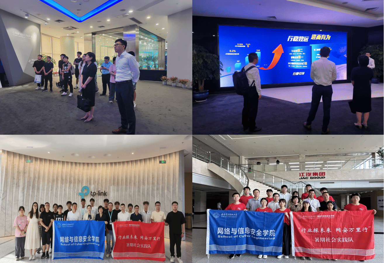 在行业领军企业,师生进行安全行业调研、发放问卷、开展研讨。在深圳奥联公司,队员们了解网络安全领域的最新技术和挑战;在中兴公司深圳总部,实践队了解自研芯片领域的最新研发进展;在广电运通,实践队员真实感受智慧城市建设和金融科技应用水平提升方面的成就;在江汽集团,实践队员了解智能汽车的网络安全需求;在安徽四创电子股份公司,队员们感受到了创新在企业发展过程中的重要作用;在科大讯飞股份有限公司,同学们感受人工智能成果在生活中的应用。今年,多名网信院毕业生入职联洲国际公司,张美茹书记勉励网信院2024届入职毕业生努力工作,为学弟学妹树立榜样。
