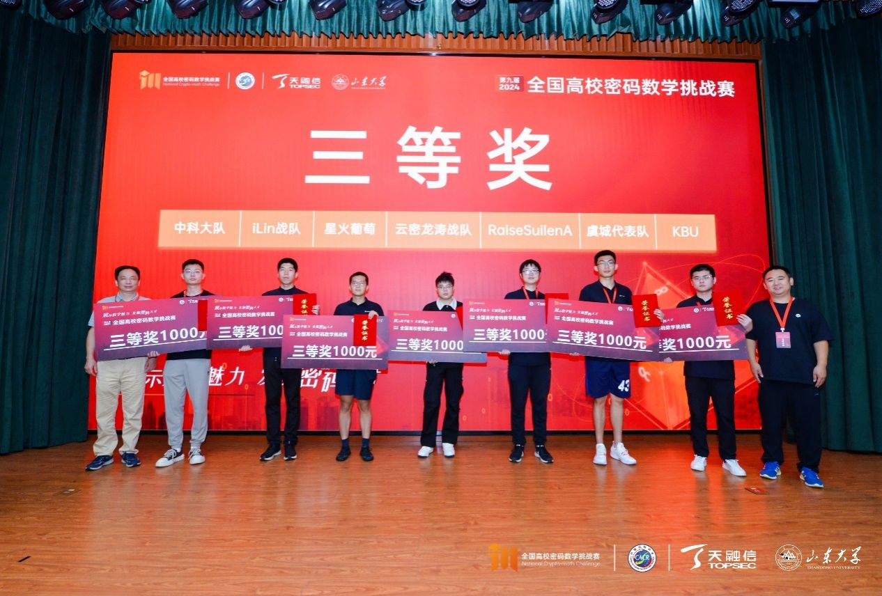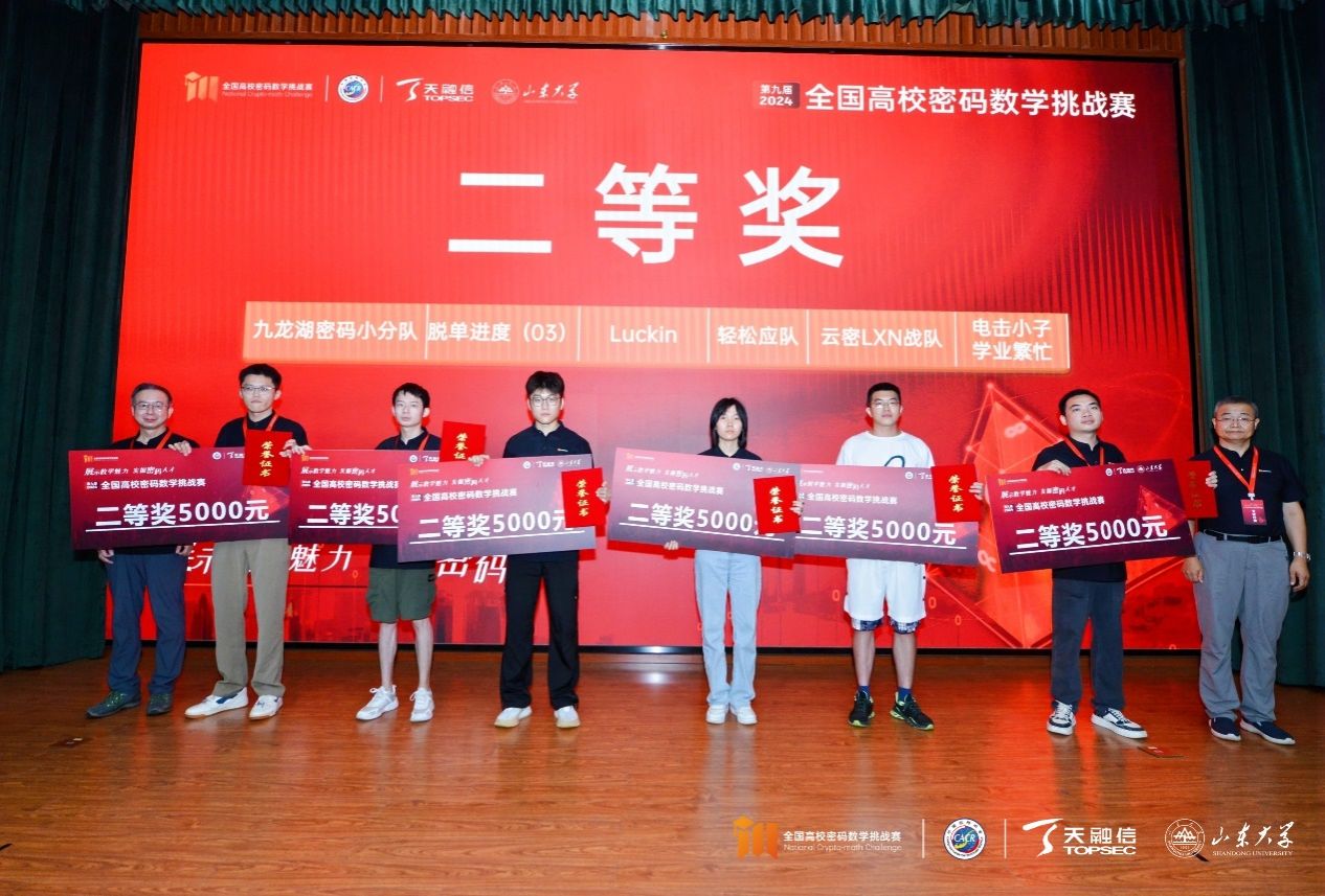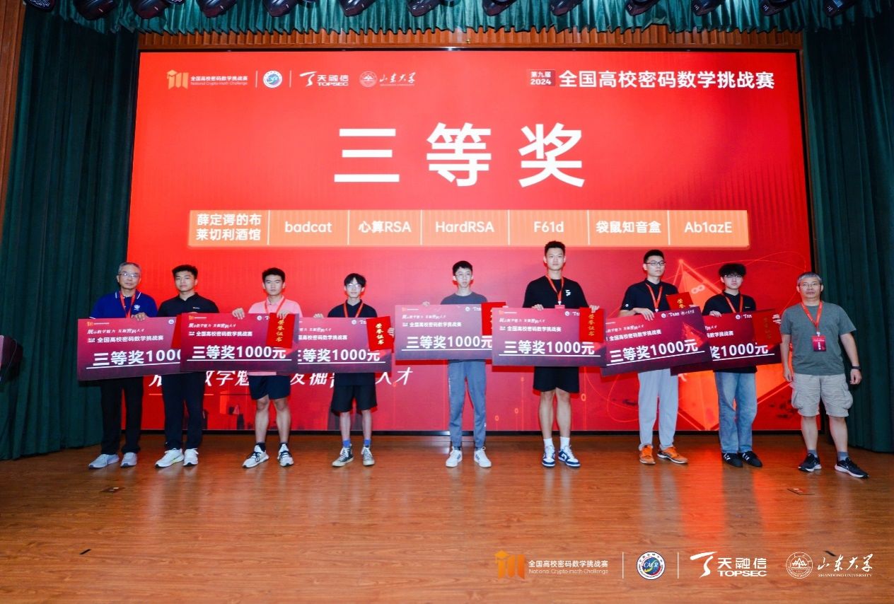 第九届(2024年)全国高校密码数学挑战赛由中国密码学会密码数学理论专业委员会、天融信科技集团联合主办,山东大学网络空间安全公司承办。本届赛事共吸引来自全国100余所高校、240余支队伍、700余位选手参与竞赛角逐,参赛高校、参赛队伍、参赛选手数量均创历史新高。经竞赛专家委员会审议,共评选出46支队伍晋级全国总决赛。