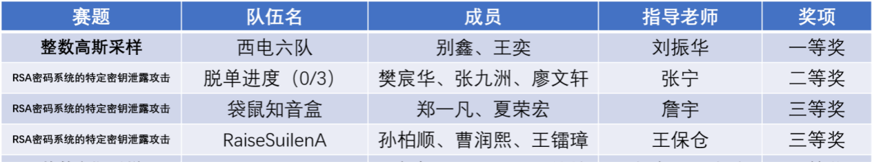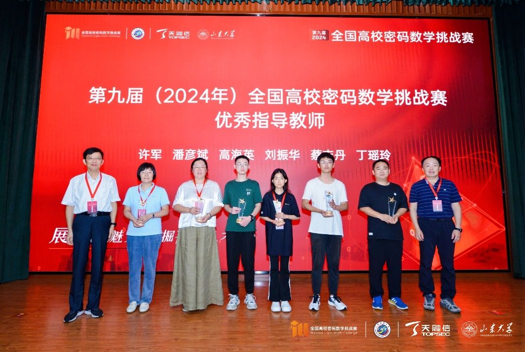 (通讯员:张九洲 张宁)8月22日至24日,第九届全国高校密码数学挑战赛总决赛在山东大学青岛校区举行。通过线上、线下公开答辩、现场提问、专家集中审议等环节,最终评选出特等奖战队1支、一等奖战队5支、二等奖战队12支、三等奖战队28支、最佳现场表现奖战队1支,西电学子在本届竞赛中再创佳绩,共获一等奖1项,二等奖1项,三等奖2项。其中,西电六队尤为突出,获一等奖,指导老师刘振华获“优秀指导老师奖”。此外,第十届全国高校密码数学挑战赛将由公司承办。