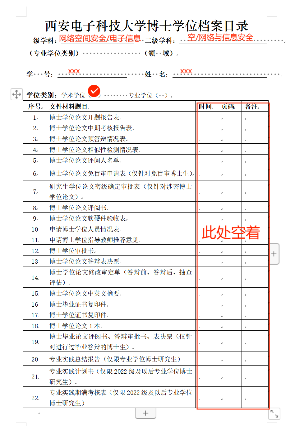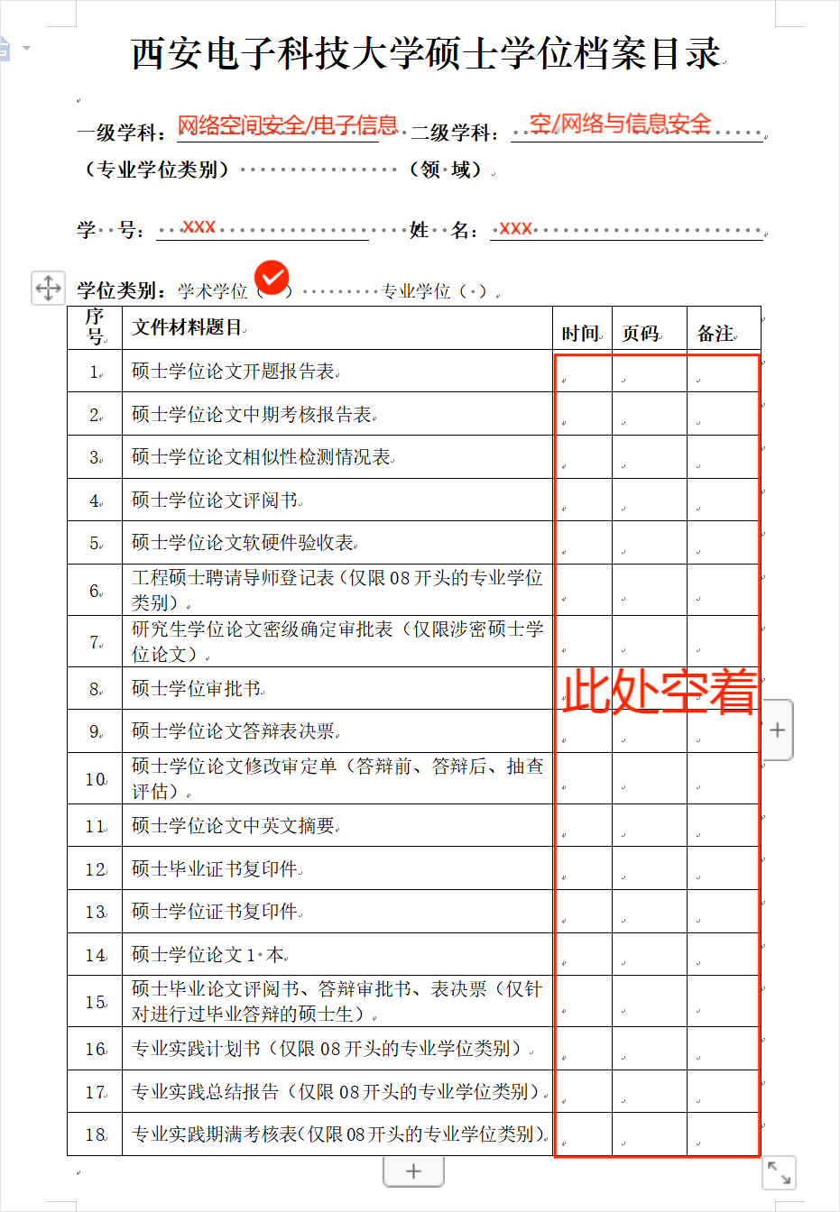 学位档案材料模板: