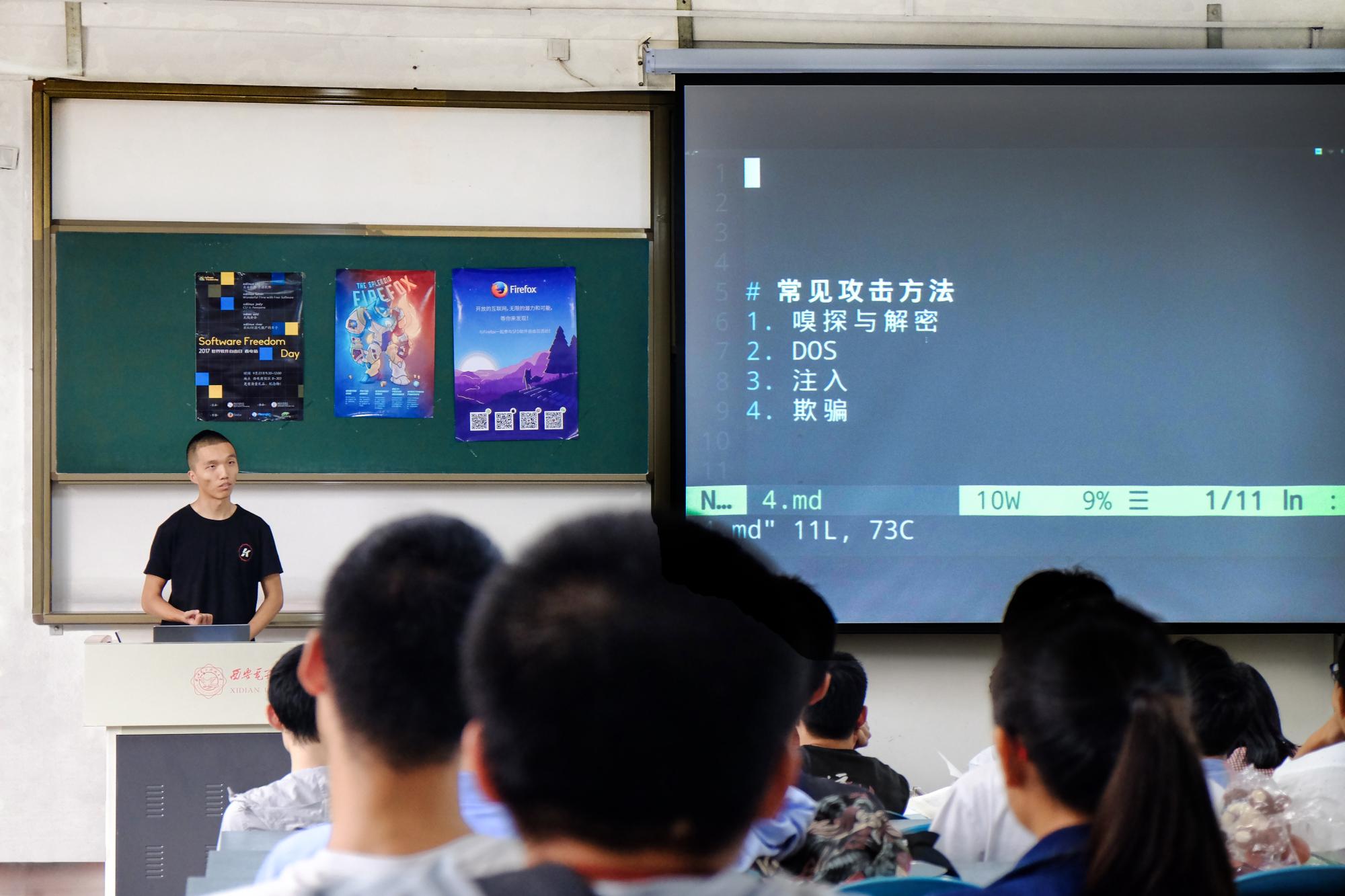 协会常规活动丰富多彩,主要活动内容有:1、进行信息安全技术的分享—协会内部按照技术的各个方向划分不同的兴趣小组,由组长带领,开展信息安全技术的交流和分享活动。小组内部由高年级成员进行技术指导,分享相关的技术知识,引导组内成员的知识学习,成员间展开各种交流活动,展示自己的经验技巧、最新的技术内容等;2、组织团队比赛—针对团体比赛,进行赛后的总结与思路交流;3、进行信息安全知识的科普活动—通过举办各种对外的科普活动和讲座,广泛传播信息安全相关知识,让更多人了解信息安全,针对各种时事热点,或是重大安全事件等,开展有针对性的宣传活动,让人们了解到什么是真正的信息安全,提高人们对恶意安全攻击的防范意识,让更多爱好者了解和接触信息安全。