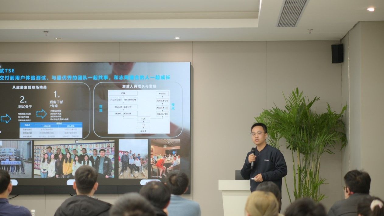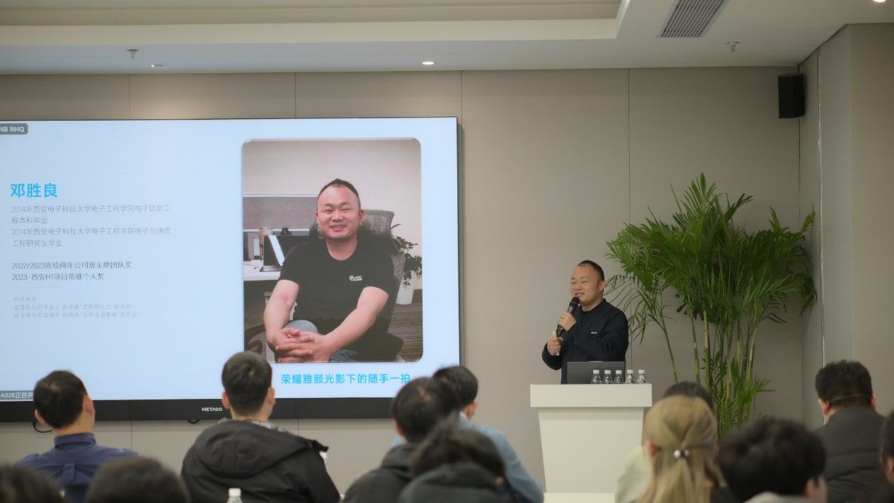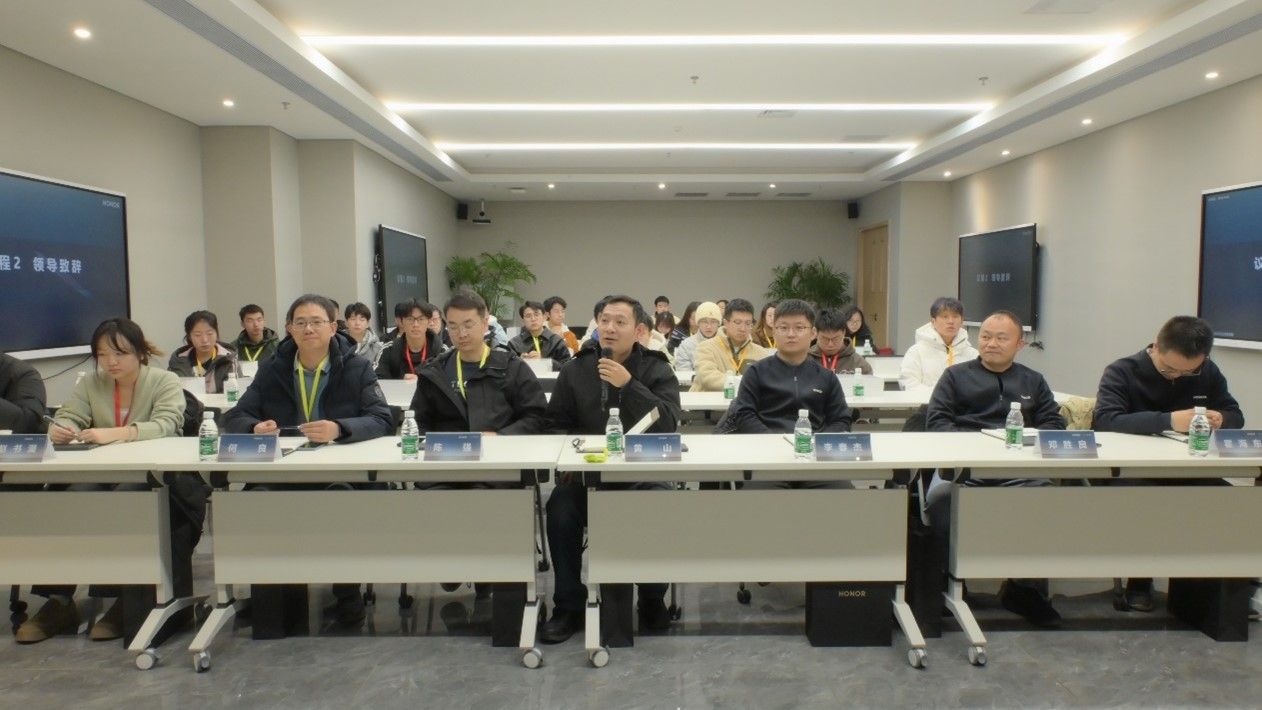 在座谈交流环节,公司人力资源部经理周瑜对网信院师生们的到来表示热烈欢迎,并向师生们介绍了公司的整体情况。公司团委书记黄山老师对公司的热情招待表示衷心感谢,并简要介绍了公司人才培养情况。接下来,由在荣耀公司入职多年的公司优秀毕业生李春杰、邓胜良、霍海东学长为师生们带来经验分享。学长们深情回顾了自己在西电求学的青春故事和入职公司的丰富经历。他们的分享让同学们对荣耀公司有了更加全面而深入的了解,也为同学们未来的职业生涯规划提供了宝贵的参考。