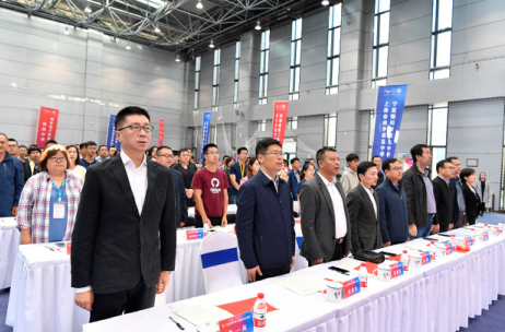 现场集体起立奏唱《国歌》