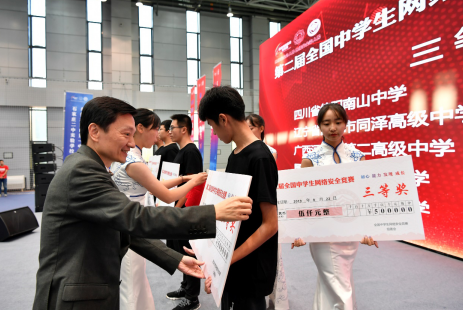 高新波在总结中强调,青少年在大赛中充分展示出新时代青少年的雄心壮志和天赋才智,也让我们在青年一代身上看到了国家网信事业蓬勃发展的信心和未来。本次大赛聚焦“大赛、大机制、大平台”“三大核心内容”,开展了丰富多彩的活动,取得了丰硕的成果。他表示,一批批青少年网络安全人才借由此平台脱颖而出、坚定初心、梦想起航。与此同时,从政府、高校到中学、企业,协同育人的共识越来越广泛,实质性合作越来越深入,首届全国中员工网络安全竞赛探索将网络安全人才培养向中学前置延伸迈出了重要的一步,第二届全国中员工网络安全竞赛进一步打通了高校、产业界和中学协同育人的渠道,为下一步构建基于全周期网络安全人才培养的创新机制奠定了坚实基础。全国中员工网络安全竞赛正以一个主体活动、四个特色品牌活动的完整体系,从发现人才、能力比拼、智慧碰撞的活动平台,逐步蜕变升华为启迪网安初心、锤炼担当使命、助力成长成才的综合实践育人平台。他强调,面向未来,西电将与地方政府、企业以及我们的中学一起,继续以高度的使命感、责任感,共同关注关心青少年成长成才,共同构筑协同育人、有利于青年人施展才华的大平台,共同推动网络空间互联互通、共享共治,共同造就更多更加优秀网信人才,为开创人类发展更加美好的未来助力,为建设网络强国、建设大美陕西提供更加有力的人才和智力支撑!