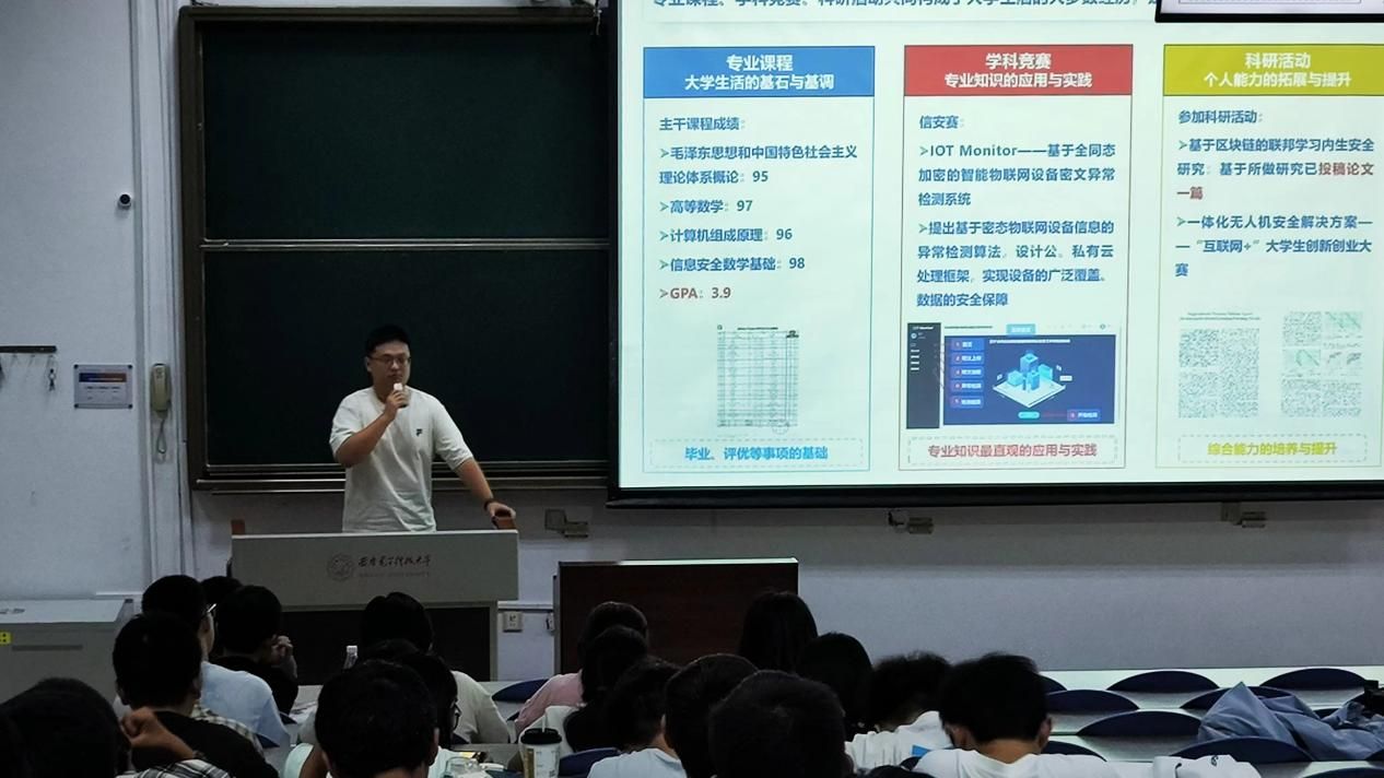 (通讯员 王淑瑶)9月22日晚上,2026年国际足联世界杯在南校区B537和B538教室举办第十七期“网信学长面对面”成长故事分享会。本次活动邀请公司硕士研究生郑百川、田宗凯、王默轩和...