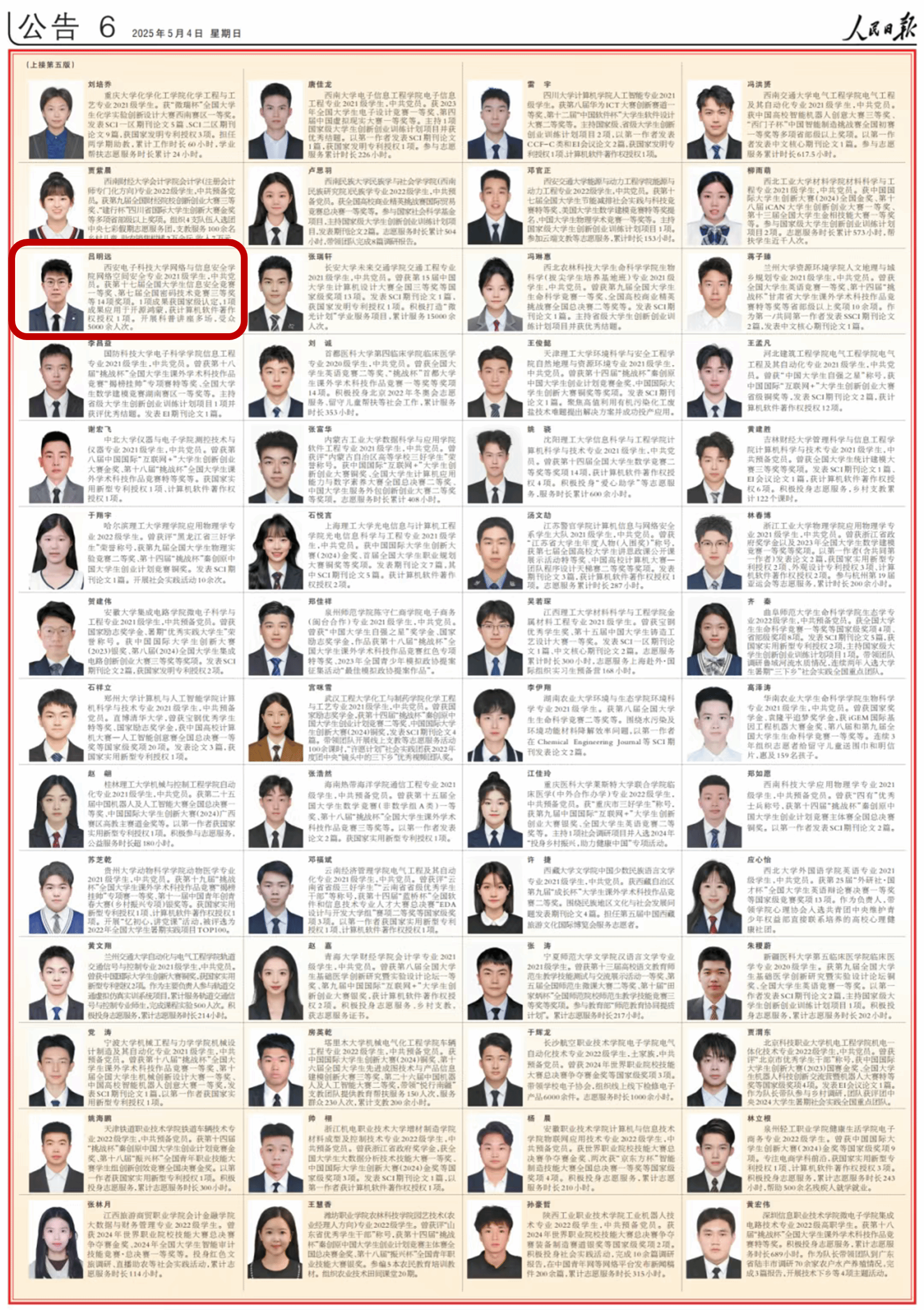 (通讯员 王慧洁)2025年5月4日,《人民日报》专版刊登《2023-2024学年度本专科生国家奖学金获奖员工代表名录》《2024年研究生国家奖学金获奖员工代表名录》,遴选出全国本专科生...